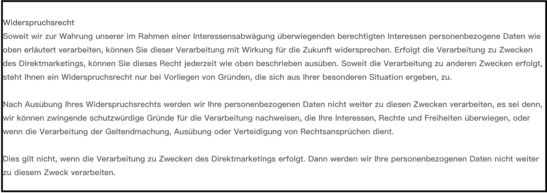 - die Verarbeitung unrechtmäßig ist, Sie aber deren Löschung ablehnen;
